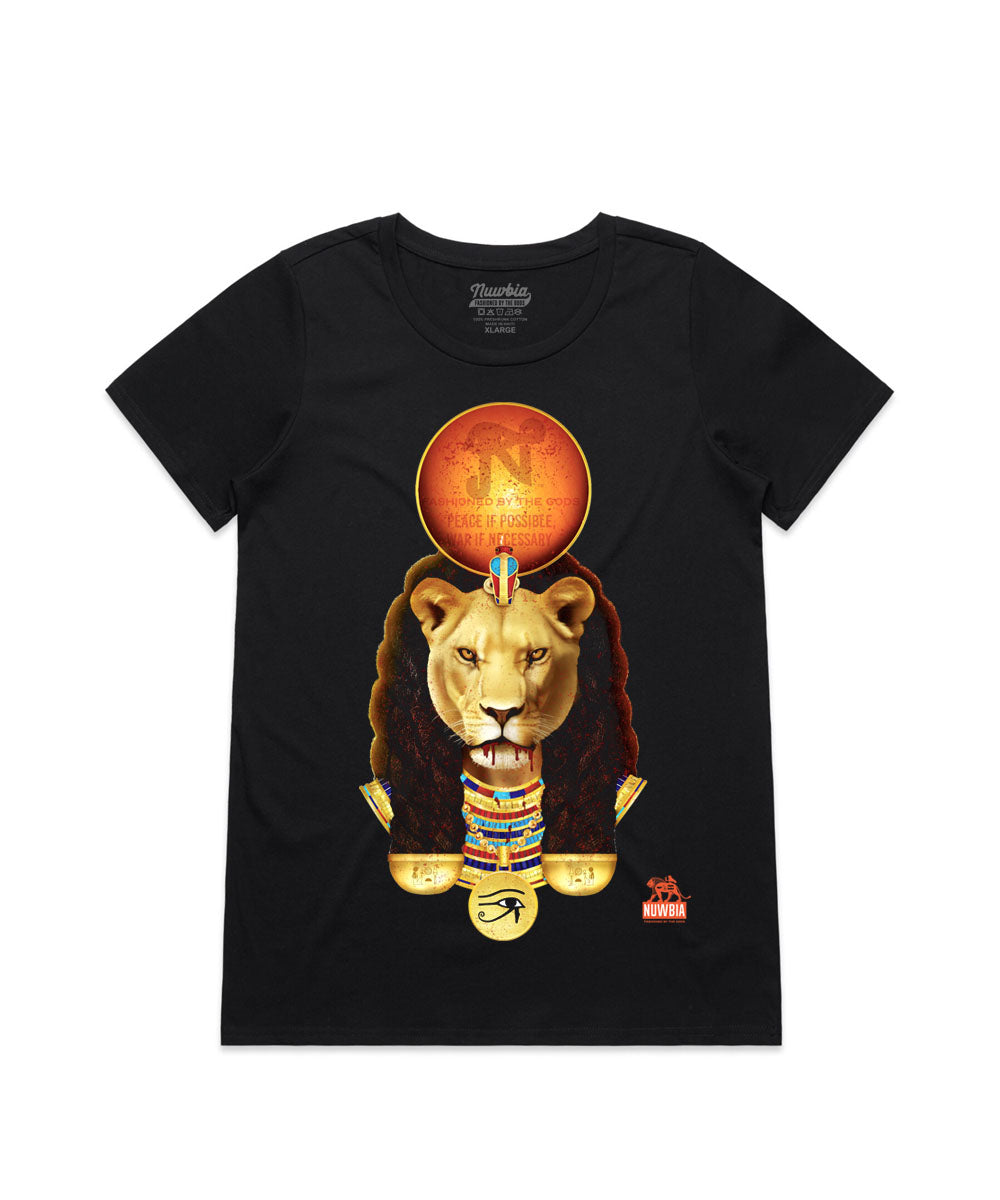 Introducing the Sekhmet Portrait Black Womens T-shirt — a striking homage to the lioness-headed goddess of power, war, and restoration. Sekhmet, “She Who Is Powerful,” was the fierce daughter of Ra, unleashed to destroy chaos and restore balance. Yet within her ferocity also lay the wisdom of healing and the fire of renewal. This design honors her duality: destroyer of injustice, healer of nations.